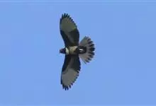靴隼雕:是鸟纲、鹰科的中型鹰类。全长约40-53厘米,头、颈白色沾棕,纵贯以暗褐色轴纹,眉纹黑色。上体深褐色,肩羽略淡。初级飞羽黑色,翅下覆羽白色,尾灰褐色,先端色较浅,有4-5条不明显的深色横斑。…全部>>