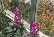 紫罗兰 W.T.Aiton)是十字花科紫罗兰属植物。二年生或多年生草本。植株高60厘米,布满灰白色的分枝柔毛;茎直立,多分枝,基部稍木质化;叶片为长圆形、倒披针形或匙形;总状花序顶生和腋生;花多数,…全部>>