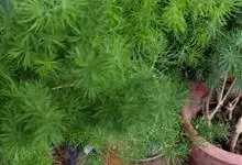 蓬莱松是天门冬科、天门冬属多年生丛生草本植物。宿存,圆柱形肉质根,纵截面为绿色和表面灰色。植株高可达3米。茎呈圆柱形或近四边形,底部木质化,具有灰色或灰褐色。幼嫩的茎在每个节上都被紫绿色鳞片包,…全部>>