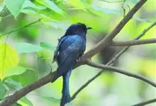 乌鹃:是杜鹃科、乌鹃属的小型鸟类,体长23-28厘米,通体黑色,尾呈浅叉状,尾下覆羽和外侧尾羽具白色横斑,在黑色的尾部极为醒目。下体黑色,微带蓝色或辉绿色。虹膜褐色或绯红色,嘴黑色,脚灰蓝色。…全部>>