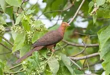 斑尾鹃鸠体长38厘米,是体大而尾长的褐色鹃鸠。背及尾满布黑色或褐色横斑。头灰,颈背呈亮蓝绿色。胸偏粉,渐至白色的臀部。雌鸟无亮绿色。背上横斑较密,尾部横斑有别于同地区的其他鹃鸠。不常见,…全部>>