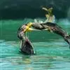 普通鸬鹚是属于鲣鸟目鸬鹚科鸬鹚属鸟类,又名水老鸦、鱼鹰、乌鬼、黑鱼郎等。体长720—900毫米,雌雄同型。通体黑色,有绿褐色金属光泽;喙厚重,喙基和喉囊橙黄色,脸颊及喉白色;夏羽颈及头饰具白色丝状羽,…全部>>