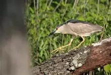 夜鹭是中型涉禽,体长46-60厘米。体较粗胖,颈较短;嘴尖细,微向下曲,黑色;胫裸出部分较少,脚和趾黄色;头顶至背黑绿色而具金属光泽;上体余部灰色;下体白色;枕部披有2-3枚长带状白色饰羽,下垂至背上,…全部>>
