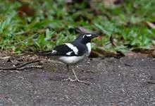 小燕尾鸫科燕尾属的一种鸟类,体长13厘米,尾短,与黑背燕尾色彩相似但尾短而叉浅。其前额白色,翼上白色条带延至下部,且尾开叉,嘴直而壮,嘴须发达;第1枚初级飞羽大约为第2枚初级飞羽长度的一半;尾比翅长,…全部>>