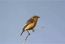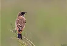 黑喉石鵖,雀形目鹟科石鵖属小型鸣禽,俗名谷尾鸟、黑喉石。其体色为黑褐色。雄鸟头部、背部、两翼及尾黑色,颈侧及翼上具白斑,胸部和腹侧红棕色,腰及尾下覆羽白色。雌鸟体色为褐色,上体具深色纵纹,胸部染棕色,…全部>>
