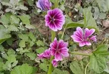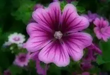 锦葵:二年生或多年生直立草本,高50-90厘米,分枝多,疏被粗毛。叶圆心形或肾形,具5-7圆齿状钝裂片,两面均无毛或仅脉上疏被短糙伏毛。花3-11朵簇生,小苞片3,长圆形疏被柔毛;花紫红色或白色,…全部>>