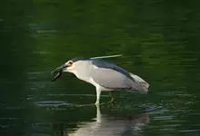 夜鹭是中型涉禽,体长46-60厘米。体较粗胖,颈较短;嘴尖细,微向下曲,黑色;胫裸出部分较少,脚和趾黄色;头顶至背黑绿色而具金属光泽;上体余部灰色;下体白色;枕部披有2-3枚长带状白色饰羽,下垂至背上,…全部>>