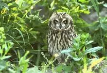 短耳鸮又名小耳木兔、田猫王、夜猫子等,是鸮形目鸱鸮科耳鸮属中小型猛禽动物。成鸟面盘显著,眼周黑色;眼先及内侧眉纹灰白色,面盘余部棕黄色杂以黑色细羽干纹;耳簇羽短小而几乎不外露,…全部>>