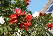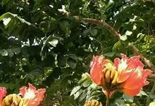 火焰木,又名苞萼木、喷泉树,为紫葳科常绿大乔木,株高10—20米,叶为奇数羽状复叶,对生,较大,斜椭圆形,全缘,纸质,叶面深绿色。 全部>>