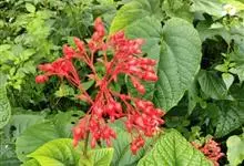赪桐 Sweet)是唇形科、大青属灌木,高1-4米,叶片圆心形,顶端尖或渐尖,基部心形,边缘有疏短尖齿,表面疏生伏毛,二歧聚伞花序组成顶生,大而开展的圆锥花序,花序的最后侧枝呈总状花序,花萼红色,…全部>>