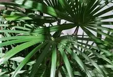 矮棕竹:丛生灌木,高1米或更高些,茎圆柱形,有节,上部被紧密的网状纤维的叶鞘,纤维毛发状,淡褐色。叶掌状深裂,裂片7-20片,线形,具1-2条肋脉,叶柄约与叶片等长,较细,两面凸起,边缘平滑。花雌雄…全部>>