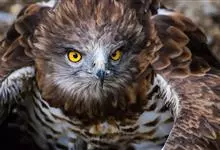 短趾雕:体长62-70厘米,体重1.2-2.3千克。它们的颔、颈和胸部上方呈浅棕色。头部浑圆像猫头鹰般,眼睛呈鲜黄色。身体沉重,上体灰褐,下体白而具深色纵纹,喉及胸单一褐色,腹部具不明显的横斑,…全部>>