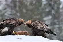金雕:属于鹰科、雕属的猛禽。体长76-102厘米,翼展达2.3米,体重2-6.5千克。雌雄同色。未成年时,头、颈黄棕色;两翼飞羽除了最外侧三枚外基部均缀有白色,其余身体部分暗褐色;羽尾灰白色,…全部>>