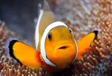 小丑鱼是鲈形目雀鲷科小丑鱼属鱼类的统称。体长仅5—6厘米。身体色彩艳丽,多为红色、橘红色;除透明的胸鳍与软背鳍鳍条外部,其余鳍均为黑色。体形怪异,体色多变,通常体侧有白色条纹。…全部>>