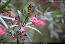 夹竹桃,又名红花夹竹桃、欧洲夹竹桃,是夹竹桃科夹竹桃属的一种常绿直立大灌木,枝条灰绿色,含水液。叶披针形,3叶轮生。聚伞花序顶生,花冠粉红至深红色,花冠漏斗状,有特殊香味。蓇葖果,圆柱形。种子长圆形,…全部>>