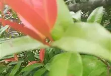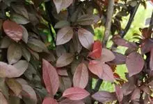 红叶石楠 是蔷薇科,石楠属杂交种,为常绿小乔木或灌木,乔木高可达5米、灌木高可达2米。叶片革质,长圆形至倒卵状、披针形,叶端渐尖,叶基楔形,叶缘有带腺的锯齿,花多而密,复伞房花序,花白色,梨果黄红色,…全部>>