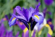 鸢尾,又名老鸹蒜、蛤蟆七、扁竹花、紫蝴蝶、蓝蝴蝶、屋顶鸢尾等,是鸢尾科鸢尾属一种多年生草本植物。鸢尾根状茎粗壮,二歧分枝;叶基生,黄绿色,宽剑形;花茎光滑,苞片2-3枚,绿色,草质,边缘膜质,色淡,…全部>>