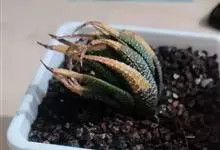 条纹十二卷 Haw.)是芦荟科十二卷属植物,为多年生肉质草本植物。植株高度10-15厘米,其呈莲座状生长;叶片紧密轮生在茎轴上,柔软多汁,呈长三角状披针形,极肥厚;叶面光滑、扁平,色深绿;叶背突起,…全部>>