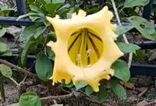 金杯藤 P.S. Green)是茄科、金杯藤属多年生常绿大型藤本。茎及枝条粗壮。叶片互生。长椭圆形。先端突尖。叶面有光泽。全株具有毒乳汁。花顶生,单朵或数朵,花苞棒槌状。从绿色转变为淡黄色。…全部>>
