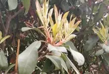 红叶石楠 是蔷薇科,石楠属杂交种,为常绿小乔木或灌木,乔木高可达5米、灌木高可达2米。叶片革质,长圆形至倒卵状、披针形,叶端渐尖,叶基楔形,叶缘有带腺的锯齿,花多而密,复伞房花序,花白色,梨果黄红色,…全部>>
