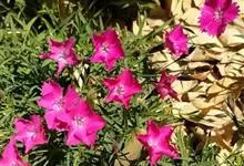 石竹是石竹科石竹属的多年生草本植物,别名中国石竹、洛阳花。石竹植株全株无毛,带粉绿色;茎由根颈生出,疏丛生,直立,上部分枝,有节;单叶对生,叶片线状披针形,全缘或有细小齿,…全部>>