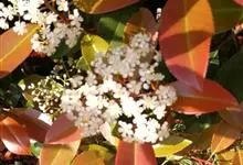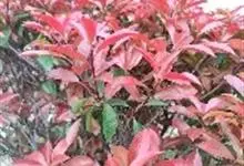 红叶石楠 是蔷薇科,石楠属杂交种,为常绿小乔木或灌木,乔木高可达5米、灌木高可达2米。叶片革质,长圆形至倒卵状、披针形,叶端渐尖,叶基楔形,叶缘有带腺的锯齿,花多而密,复伞房花序,花白色,梨果黄红色,…全部>>