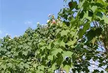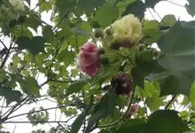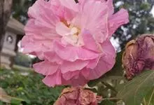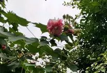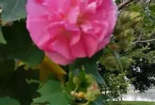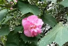 木芙蓉,锦葵科木槿属落叶灌木或小乔木。小枝上有细绒毛;叶片为卵状心形,托叶为披针形,常早落;花单生,花萼为钟形,花冠初为白色或淡红色,后逐渐变为深红色;果实为扁球形,有淡黄色的毛附着。花期8到10月。…全部>>