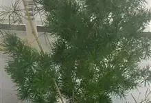 蓬莱松是天门冬科、天门冬属多年生丛生草本植物。宿存,圆柱形肉质根,纵截面为绿色和表面灰色。植株高可达3米。茎呈圆柱形或近四边形,底部木质化,具有灰色或灰褐色。幼嫩的茎在每个节上都被紫绿色鳞片包,…全部>>