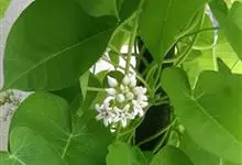 萝藦 Makino),夹竹桃科鹅绒藤属多年生草质藤本植物,有块根,全株有乳汁;叶对生,呈卵状心形,顶端渐尖,无毛;花冠白色,有粉红色内沟和柔毛;萝藦的种子在果实内部环绕一根中轴排列,当果实裂开时,…全部>>
