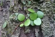 伏石蕨是水龙骨科、伏石蕨属小型附生蕨类植物。根状茎细长横走,淡绿色,疏生鳞片粗筛孔,两侧不规则分叉。叶远生,二型;叶片近球圆形或卵圆形,基部圆形或阔楔形,全缘;能育叶狭缩成舌状或狭披针形,叶脉网状,…全部>>