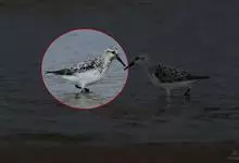 翻石鹬:体重82-135克,体长180-240毫米。体型高矮兼称,看起来十分的滑稽。它们在繁殖季时体色非常醒目,由栗色、白色和黑色交杂而成,嘴短,黑色,脚橙红色。到了冬天,翻石鹬身上的栗红色就会消失,…全部>>