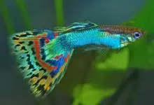 孔雀花鳉 ,俗名孔雀鱼,也称为凤尾鱼、彩虹花鳉、虹鳉、古比鱼等,是花鳉科花鳉属的一种热带鱼,雌雄鱼的体型和色彩差别较大,成年雄鱼身体瘦小,体长3-4厘米,体色绚烂多彩、体型优美;成年雌鱼体长5厘米…全部>>