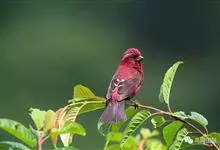普通朱雀是雀形目雀科朱雀属鸟类,又名红朱雀、马料、青麻料。雄鸟上体红色,下体淡红色;头部、喉部、胸部及腰部亮红色;背部褐色染红色;两翼及尾黑褐色,羽缘染红色。雌鸟上体橄榄褐色,下体近白色,…全部>>