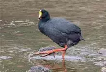 黑水鸡:是鹤形目、秧鸡科的鸟类,共有12个亚种。中型涉禽,体长24-35厘米。嘴长度适中,鼻孔狭长;头具额甲,后缘圆钝;嘴和额甲色彩鲜艳。翅圆形,第2枚初级飞羽最长,或第2枚和第3枚初级飞羽等长,…全部>>
