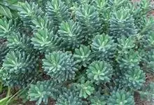 薄雪万年草别名矶小松,景天科景天属多年生草本植物,其细小的蓝绿色棒状叶片环绕生长于茎端,茎匍匐生长接触地面易着生不定根,整片生长郁郁葱葱犹如蓝色地毯,绿化效果极为秀美。原产西班牙,…全部>>