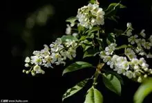 稠李是蔷薇科、李属的乔木。株高达15米;幼枝被绒毛,冬芽无毛或鳞片边缘有睫毛;叶椭圆形、长圆形或长圆状倒卵形,基部圆或宽楔形,有不规则锐锯齿,花序梗和花梗无毛,萼筒钟状,萼片三角状卵形,花瓣白色,…全部>>