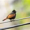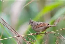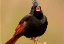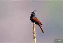 凤头鹀:属小型鸣禽,体重21-31克,体长134-175毫米。以头顶的细长羽冠为特征,雄鸟全身几乎均为黑色具蓝色光泽,两翅和尾以及尾上覆羽栗红色。雌鸟具短的褐色羽冠,上体暗橄榄褐色,…全部>>