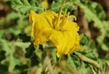 黄花刺茄是茄科,茄属一年生草本植物。直根系,主根发达,侧根较少,多须根。茎直立,基部稍木质化,株型类似灌木。高可达70厘米。叶互生,叶柄长0.5-5厘米,密被刺及星状毛;叶片卵形或椭圆形,…全部>>