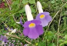 爵床科山牵牛属多年生常绿灌木,植株高2-3米,分枝多,枝条较柔软,幼茎四棱形,绿色至深褐色。蓝吊钟抗性强、病虫害少、管理粗放、分枝多而繁茂,且耐修剪,花期又长,花形奇特,花色为较少见的蓝紫色,故很适…全部>>