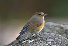红胁蓝尾鸲俗名:蓝点冈子、蓝尾巴根子、蓝尾杰、蓝尾欧鸲。体型略小而喉白的鸲。特征为橘黄色两胁与白色腹部及臀成对比。雄鸟上体蓝色,眉纹白;亚成鸟及雌鸟褐色,尾蓝。…全部>>