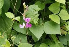 扁豆 Sweet)是豆科扁豆属多年生缠绕藤本植物,又名鹊豆、沿篱豆、藤豆等。全株几无毛,茎长可达6米。羽状复叶具3小叶;托叶基着,叶片披针形;小托叶线形,小叶宽三角状卵形,宽与长相等,…全部>>