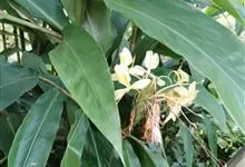 姜花又名野姜花。是姜科姜花属的多年生草本植物,茎高1-2米;叶片长圆状披针形或披针形,叶面光滑,叶背被短柔毛;穗状花序顶生,椭圆形,花芬芳,白色;蒴果卵状三棱形,微黄绿色;种子鲜红色,具橘红色的假种皮。…全部>>