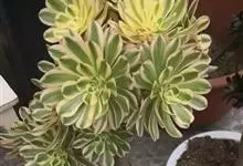 清盛锦别名艳日辉、夕映,为景天科莲花掌属多年生常绿肉质植物。原生地位于大西洋加那利群岛。 植株呈多分枝的灌木状,倒卵形肉质叶在枝头组成较小的莲座状叶盘,叶的中央淡绿色与杏黄色间杂,边缘有红色斑块,…全部>>