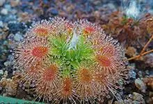 迷你茅膏菜学名圆叶茅膏菜,又名毛毛苔、迷你毛毡苔和迷你茅膏菜,茅膏菜科植物。多年生草本,茎短,叶基生,叶片圆形或扁圆形,螺状聚伞花序1-2条,腋生,花葶状,纤细,直立,蒴果,熟后开裂为3果爿,种子多…全部>>
