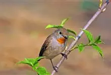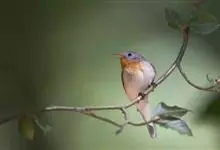 棕胸蓝姬鹟:属小型鸣禽,体长10-13厘米,体重6-10克,是一种体型很小的灰蓝及棕色鹟,雌雄羽色不同,雄鸟羽色艳丽,雌鸟羽色暗淡。雄鸟上体深蓝色,胸橙黄色,下腹灰白色。亚成鸟具褐色斑驳。…全部>>