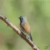 棕胸蓝姬鹟:属小型鸣禽,体长10-13厘米,体重6-10克,是一种体型很小的灰蓝及棕色鹟,雌雄羽色不同,雄鸟羽色艳丽,雌鸟羽色暗淡。雄鸟上体深蓝色,胸橙黄色,下腹灰白色。亚成鸟具褐色斑驳。…全部>>