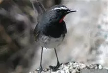 黑胸歌鸲是鹟科、歌鸲属小型鸟类,体长13-16厘米。上体石板灰褐色或橄榄褐色,头和颈侧黑色,眉纹和颧纹白色,在暗色的头部极为醒目。两翅和尾黑褐色,外侧尾羽具白色端斑。下体颏、喉雄鸟深红色,雌鸟白色。…全部>>