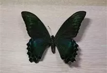 巴黎翠凤蝶中型凤蝶,躯体黑褐色,散布绿色亮鳞。后翅M3脉端有一明显叶状尾突。翅背面底色黑褐色,密布亮鳞,后翅前侧有一枚蓝绿色亮斑,与后翅中央之绿色亮线连接。后翅臀区有一紫红色圈纹。翅腹面底色褐色,于…全部>>