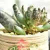 褐斑伽蓝是景天科伽蓝菜属的多年生多肉类植物,茎直立,多分枝,叶生于枝上,肉质叶片匙形,上面密被白色绒毛,下部全缘,叶缘上部有缺刻,缺刻处有深褐或棕色斑块。褐斑伽蓝原产非洲的马达加斯加岛。…全部>>