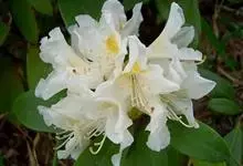 大白杜鹃是杜鹃花科杜鹃花属的常绿灌木,高可达5米。幼枝绿色,无毛;叶厚革质,长圆形或圆状倒卵形,先端钝或圆,基部楔形;总状伞形花序顶生,花序轴疏生白色腺体,花梗粗,具白色有柄腺体,冠宽漏斗状钟形,…全部>>